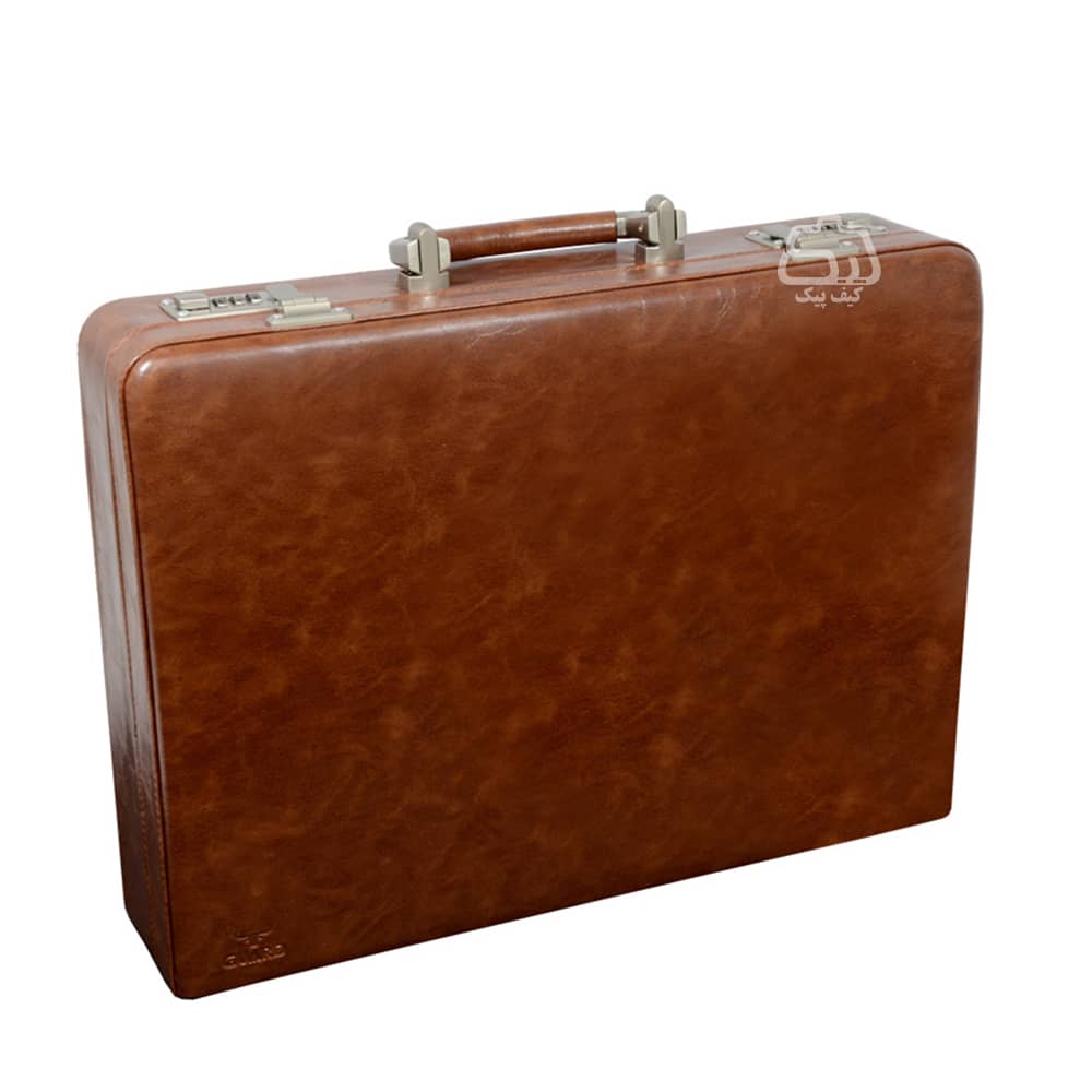 این کیف با ظاهری ظیک و مدیریتی دارای قالب چوبی محکم و با دوام بوده و با دو عدد جک داخلی سهولت در باز و بسته شدن کیف را فراهم میکند