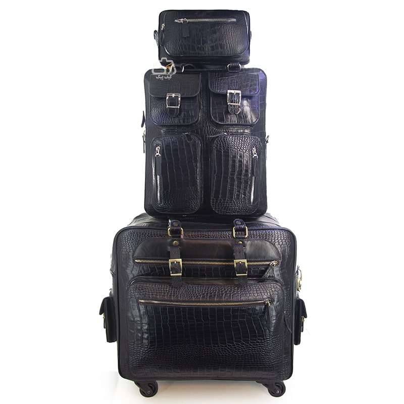 ست چرم طبیعی کیف دوشی کوله و چمدان چرخدار