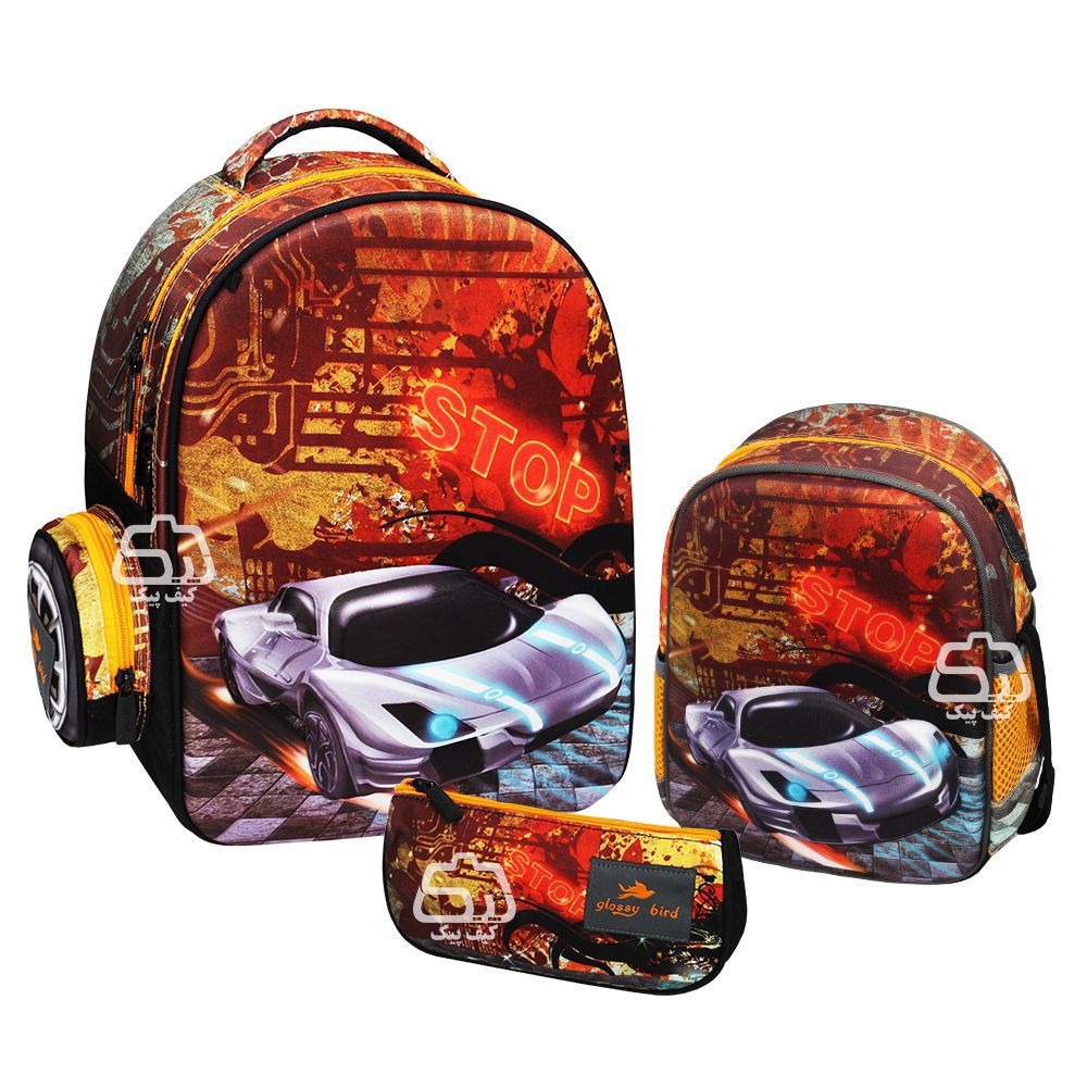 کوله دبستانی پسرانه مدل گلوسی بیرد کد AH101 با جامدادی و کیف دوشی