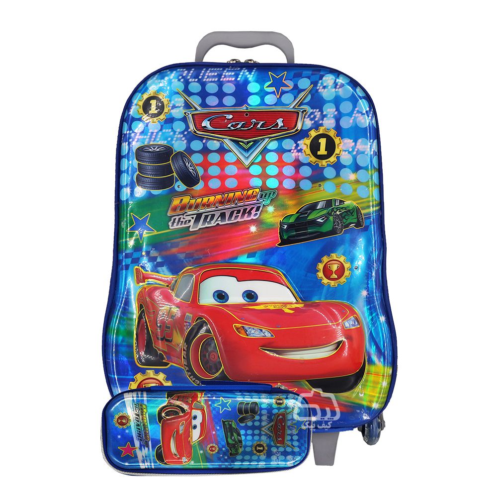 چمدان پسرانه بچه گانه چرخدار طرح مک کوئین مدل 1397D به همراه جامدادی